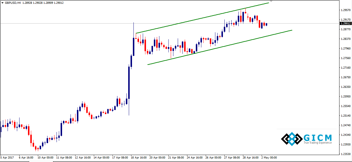 GBP/USD snapped a three-day winning streak on May Day as it dropped to 1.2882 after UK PM Theresa May threatened to walk away from the EU without a deal. The weak US personal spending and inflation numbers failed to lift the pair as the odds of the June Fed rate hike ticked higher to 71% from 67%.